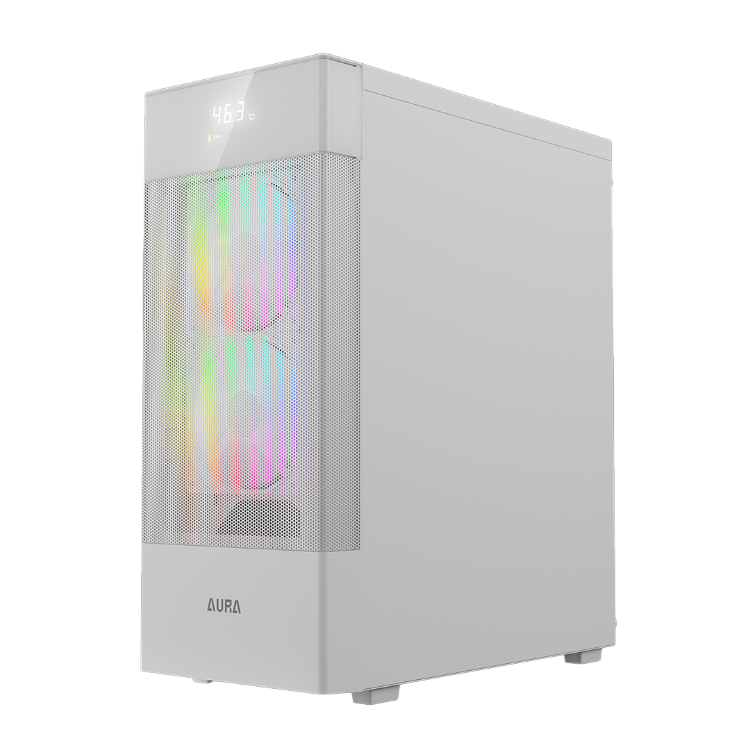 Gamdias Aura GC5 Elite With Digital Display ARGB Mid-Tower Case White.