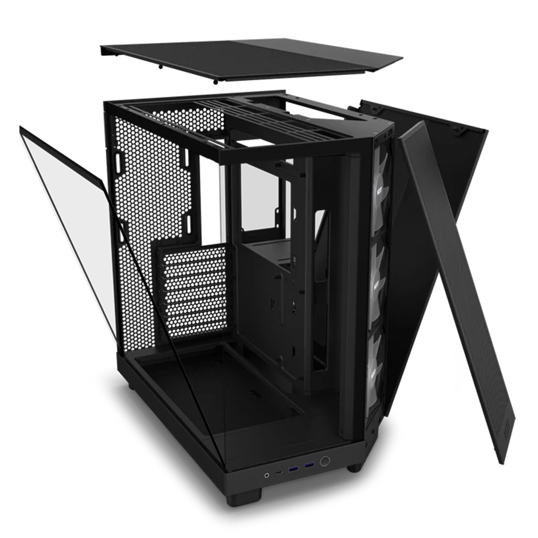 Experience peak performance and vibrant RGB within an innovative compact dual-chamber. Prioritizing GPU cooling, the H6 Flow’s panoramic glass showcases the interior while freeing up space for improved airflow.